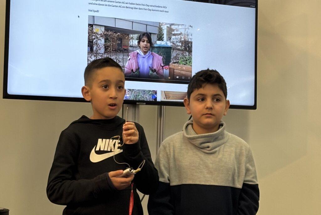 Am Freitag ging es genauso inspirierend weiter. Zehnjährige Grundschulkinder des Familiengrundschulzentrums Sonnenstraße aus Düsseldorf berichteten von ihren Erfahrungen mit dem FREI DAY. Sie erzählten leidenschaftlich, wie sie diesen Freiraum zum Lernen und Gestalten erleben.