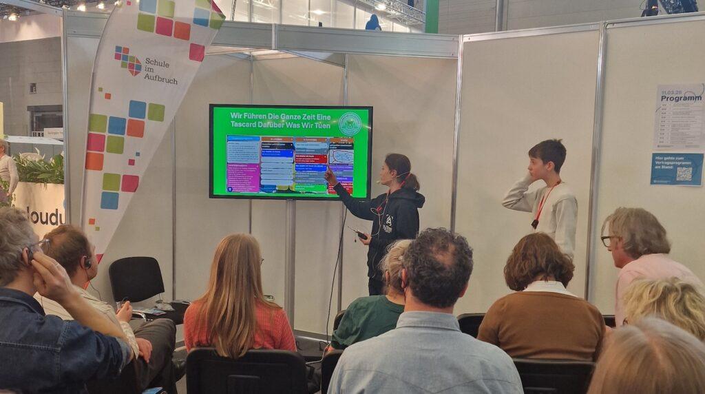 Besonders schön zu beobachten war der Rollentausch: Die Kinder beantworteten geduldig die vielen neugierigen Fragen der Erwachsenen aus dem Publikum. Ein weiteres Highlight für sie war das anschließende Gespräch mit einem Redakteur des didacta Magazins.