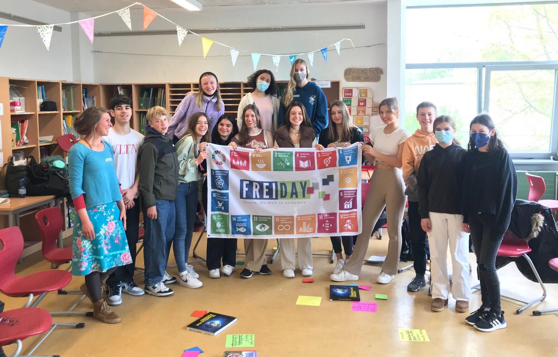 Mit ihren vielfältigen Perspektiven haben die Schüler*innen verschiedene digitale Infoveranstaltungen eingebrachtund ihre Projekte & Erfahrungen bei einem Fachtag in Luxemburg sowie einem Workshop des Landesprogramms “Schule der Zukunft” in Dortmund vorgestellt. Im Gespräch mit den Jugendlichen wird spürbar, wie sehr sie an ihren selbstgewählten Projekten und dem Kontakt mit unterschiedlichen gesellschaftlichen Akteur*innen wachsen können. Ein riesiges Dankeschön für euren Einsatz für den FREI DAY und die Welt!